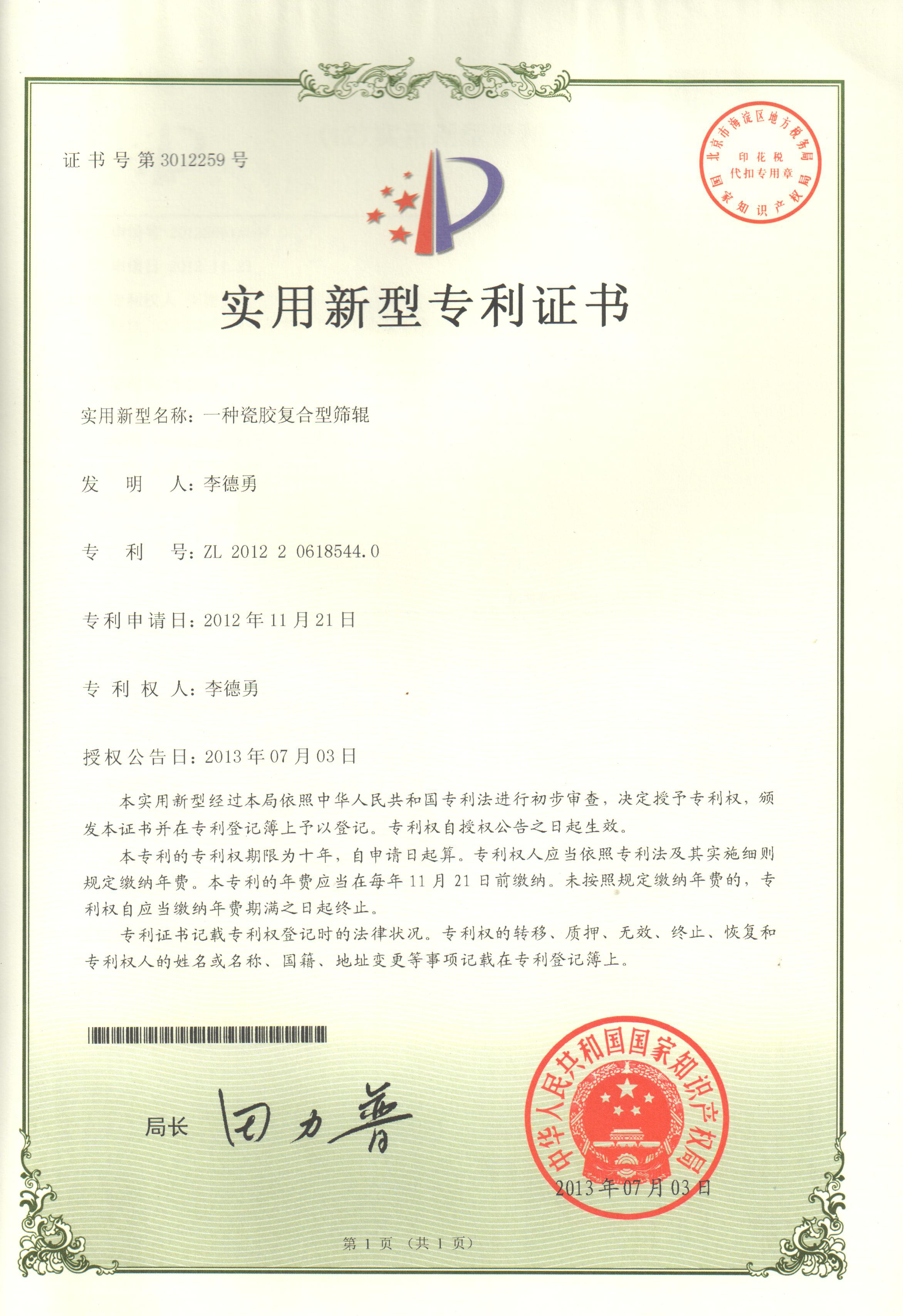 一種瓷膠復合型篩輥